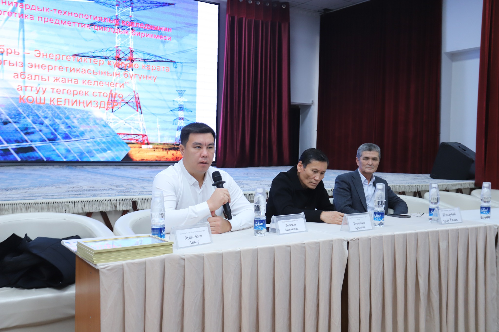 Далее с поздравительными выступлениями выступили директор предприятия «Ош электр тармактары» Жолдубай уулу Тилек, директор Института энергетики и транспорта Нуркул Мурзакулов, а также заведующий отделом техники и технологий Рустам Пакирдинов, поделившиеся своими взглядами на текущее состояние и перспективы развития энергетической отрасли.