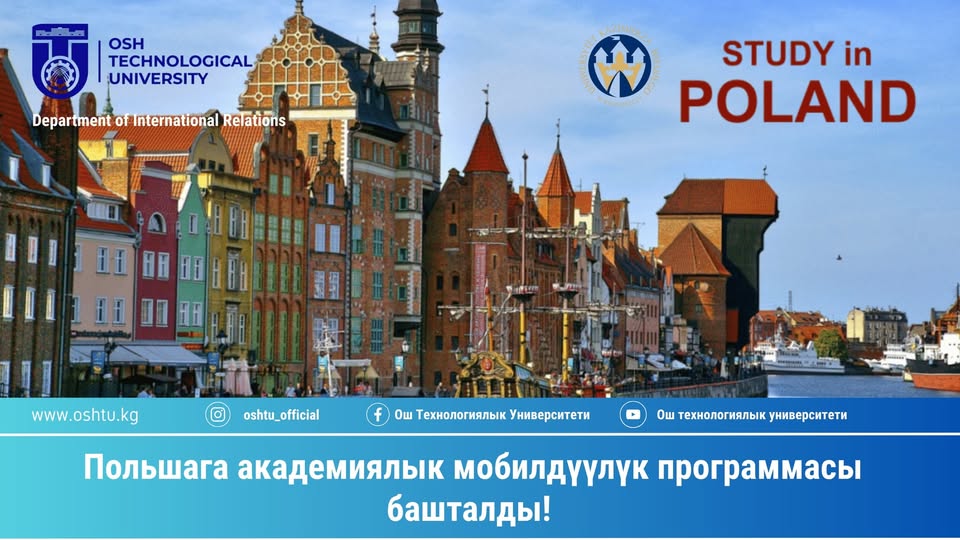 Osh Technological University invites members of the academic and teaching staff to participate in the academic mobility program! The program is available in the following fields: Languages (English), Economics, and Information Technology (IT).