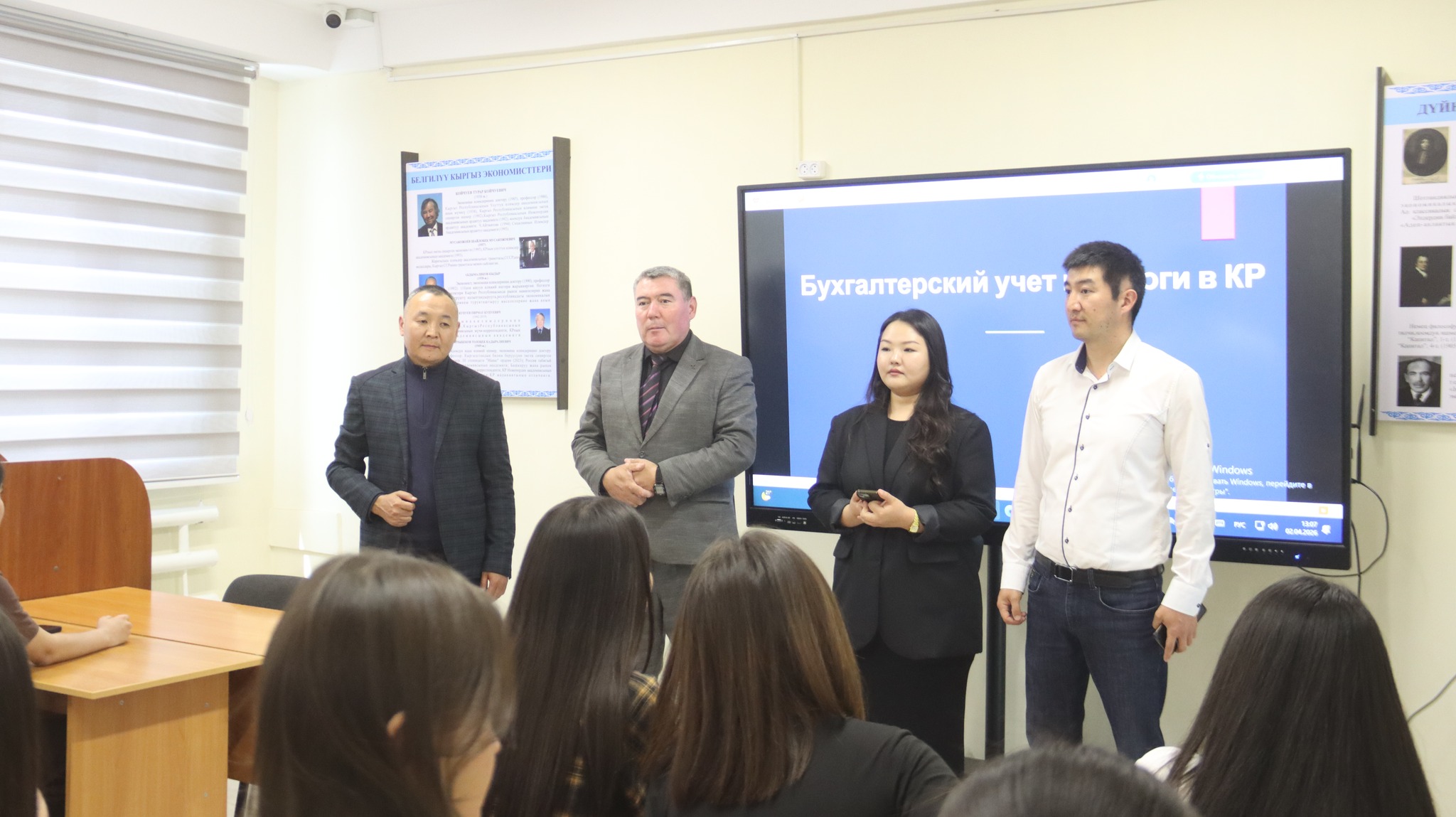 Конок лекцияга Кыргыз Республикасынын Салык кызматынын 2-рангадагы кеңешчиси, Маалыматтык камсыздоо бөлүмүнүн башчысы Абдырай уулу Асылбек чакырылып, ЭиБУ-1-24(9), ЭиБУ-2-24(9) жана ЭиБУ-2-25(9) тайпаларынын студенттерине “Кыргызстандагы бухгалтердик эсеп жана салыктар” аттуу темада мазмундуу лекция окуп берди.